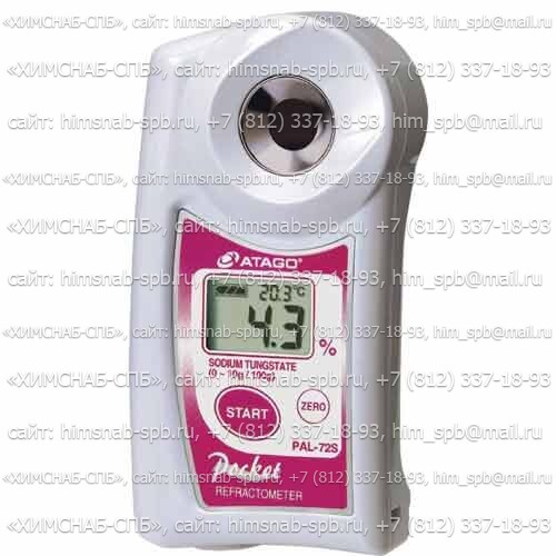 Купить PAL-72S рефрактометр PAL (Atago) вольфрамата натрия - анализ количественный и структурный, определение физико-химических параметров вещества - цифровой портативный карманный PAL-72S рефрактометр - современный лабораторный прибор Atago Серия PAL специальные шкалы, Atago PAL Series special scale измеряющий показатель/коэффициент рефракции/преломления света в среде. Производитель Atago, прибор refractometer предназначен для измерения вольфрамата натрия (гр/100гр). рефрактометр Atago PAL-72S карманный цифровой, концентрации Вольфрамат натрия: 0.0....10.0% - купить прибор в Санкт-Петербурге в компании ХИМСНАБ-СПБ. Достоинства модели Atago: Легкость, простота и надежность конструкции - достоинства моделей серии PAL Atago - обеспечивают длительный срок эксплуатации, эргономичный дизайн обеспечивает простоту эксплуатации (...