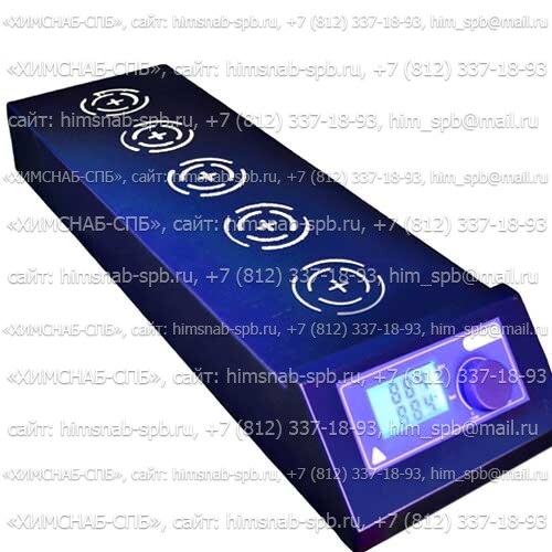 Купить US-1605 магнитная мешалка 5-ти местная без подогрева лабораторное перемешивающие устройство: магнитная мешалка US-1605 лабораторная купить в Санкт-Петербурге в компании ХИМСНАБ-СПБ - электронно-механическое устройство обеспечивает выполнение операций по смешиванию веществ, растворов, реагентов при заданной постоянной скорости вращения магнитных якорей, помещённых в химические сосуды с жидкостями Достоинства модели US-1605: простота и надежность конструкции обеспечивают длительный срок эксплуатации, эргономичный дизайн обеспечивает простоту эксплуатации и обслуживания.