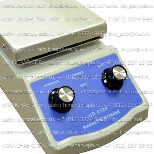 Купить US-6120 магнитная мешалка с подогревом лабораторное перемешивающие устройство: магнитная мешалка US-6120 лабораторная купить в Санкт-Петербурге в компании ХИМСНАБ-СПБ - электронно-механическое устройство обеспечивает выполнение операций по смешиванию веществ, растворов, реагентов при заданной постоянной скорости вращения магнитных якорей, помещённых в химические сосуды с жидкостями Рабочая поверхность, устойчивая к кратковременному воздействию агрессивных сред. Штатив с универсальным держателем позволяет удобно фиксировать электроды или термометры. Достоинства модели US-6120: простота и надежность конструкции обеспечивают длительный срок эксплуатации, эргономичный дизайн обеспечивает простоту эксплуатации и обслуживания.