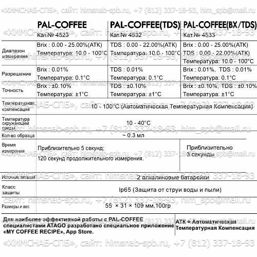 рефрактометр цифровой Atago PAL-COFFEE (TDS) проверка продуктов питания, для пищевых продуктов - купить прибор в Санкт-Петербурге в компании ХИМСНАБ-СПБ.