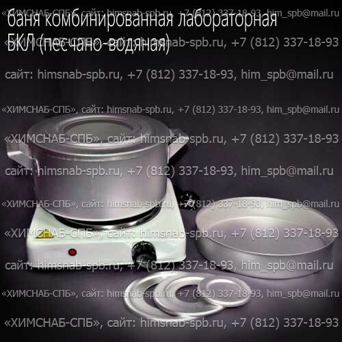 Купить баня комбинированная лабораторная БКЛ песчано-водяная закрытый резервуар объем 2 литра, колба объем 0,5 литра - универсальный лабораторный прибор для нагревания, выпаривания, высушивания, экстракции и т.п. Температура нагрева от 5 до 99 °C и выше в зависимости от модели. В компании Химснаб-СПБ можно купить воднянные бани и другое электронагревательное оборудование для вашей лаборатории. Производитель