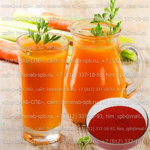 бета каротин Вы можете (приобрести, купить, заказать) качественное сырье, пищевые добавки для пищевого производства. + Компания «ХИМСНАБ-СПБ» продает разнообразные ингредиенты и добавки для пищевого производства. Оформление заказа и поставка на пищевое производство химического сырья: регуляторы кислотности и стабилизаторы, противоокислители и консерванты. Разнообразное химическое сырье используется в технологических процессах переработки и сохранении качества готовой продукции и пищевых продуктов. Компания ООО «ХИМСНАБ-СПБ» реализует в Санкт-Петербурге широкий ассортимент сырья для производства.