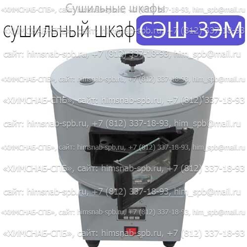Купить сушильный шкаф сэш-3эм, сушильная камера сэш-3 эм - электронагревательное оборудование, лабораторный прибор для сушки посуды, термостойких шприцев, хирургического и другого инструмента. Прибор для сушки, термостатирования, нагрева, термической обработки образцов для удаления влаги. Принцип действия данных сушильных шкафов - равномерном высушивании пробы благодаря воздушному потоку, который создает центробежный вентилятор и нагревательные элементы вращающегося стола со специальными пробами. Сушильный шкаф СЭШ-ЗМ это сушильная камера, которая защищается одним слоем теплоизоляции с дверкой специальной для загрузки бюкс В компании Химснаб-СПБ можно купить шкафы сушильные, drying cabinets и другое электронагревательное оборудование для вашей лаборатории. Производитель шкаф сушильный 1шт; бюкса малая 10 шт; щипцы тигельные 1 шт; па...