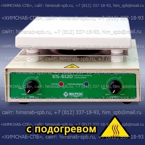Купить магнитная мешалка ES-6120 с подогревом лабораторное перемешивающие устройство: ES-6120 магнитная мешалка лабораторная с подогревом Экрос купить в Санкт-Петербурге в компании ХИМСНАБ-СПБ - электронно-механическое устройство обеспечивает выполнение операций по смешиванию веществ, растворов, реагентов при заданной постоянной скорости вращения магнитных якорей, помещённых в химические сосуды с жидкостями