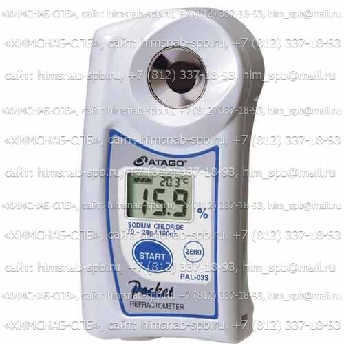 Купить PAL-03S рефрактометр PAL (Atago) хлорид натрия, хлористый натрий (NaCl) - структурный и количественный анализ, определения физико-химических параметров вещества - цифровой портативный карманный рефрактометр PAL-03S - современный лабораторный прибор Atago Серия PAL специальные шкалы, Atago PAL Series special scale измеряющий показатель/коэффициент рефракции/преломления света в среде. Производитель Atago, прибор refractometer предназначен для измерения концентрации NaCl в воде (гр/100гр).