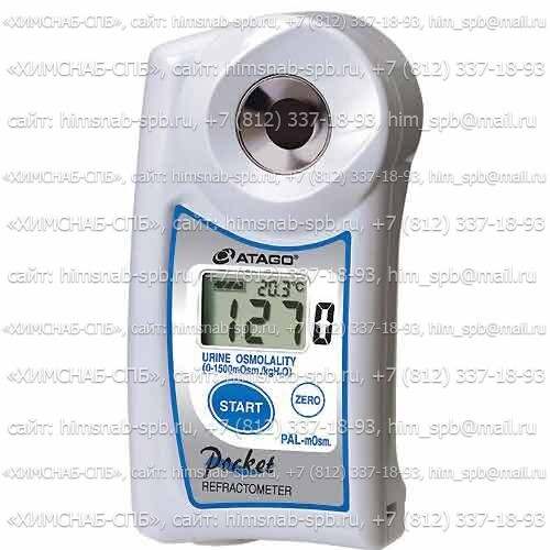 Купить PAL-mOsm рефрактометр PAL (Atago) осмоляльность мочи мОсм/кг H2O - структурный и количественный анализ, определения физико-химических параметров вещества - цифровой портативный карманный рефрактометр PAL-mOsm - современный лабораторный прибор Atago Серия PAL специальные шкалы, Atago PAL Series special scale измеряющий показатель/коэффициент рефракции/преломления света в среде. Производитель Atago, прибор refractometer для измерения осмоляльности мочи. Осмоляльность - показатель оценки водного баланса организма. Основные показания к применению: диагностика острой почечной недостаточности, выявление гиперосмолярных коматозных состояний, оценка эффективности инфузионной терапии. Осмоляльность мочи - количественная мера осмотически активных веществ, растворенных в моче т. е. сумма концентраций концентраций катионов, анионов и неэлектролитов, выражающаяся в миллиосмолях на килорамм воды (мОсм/кг Н 2 О). К основным веществам, определяющим осмоляльность мочи (в отличие от веществ крови - натрий, глюкоза, мочевина), относят конечные продукты азотистого обмена - креатинин, мочевину, мочевую кислоту. Почки способны выводить концентрированную мочу, но почти не содержащую натрий.